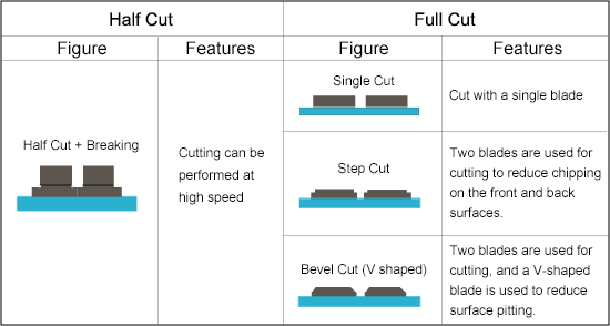 For dicing cut specifications, we offer the best application processing according to processing quality and products.
