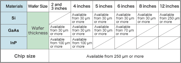 (2)Available dicing wafer size, wafer thickness, and chip size